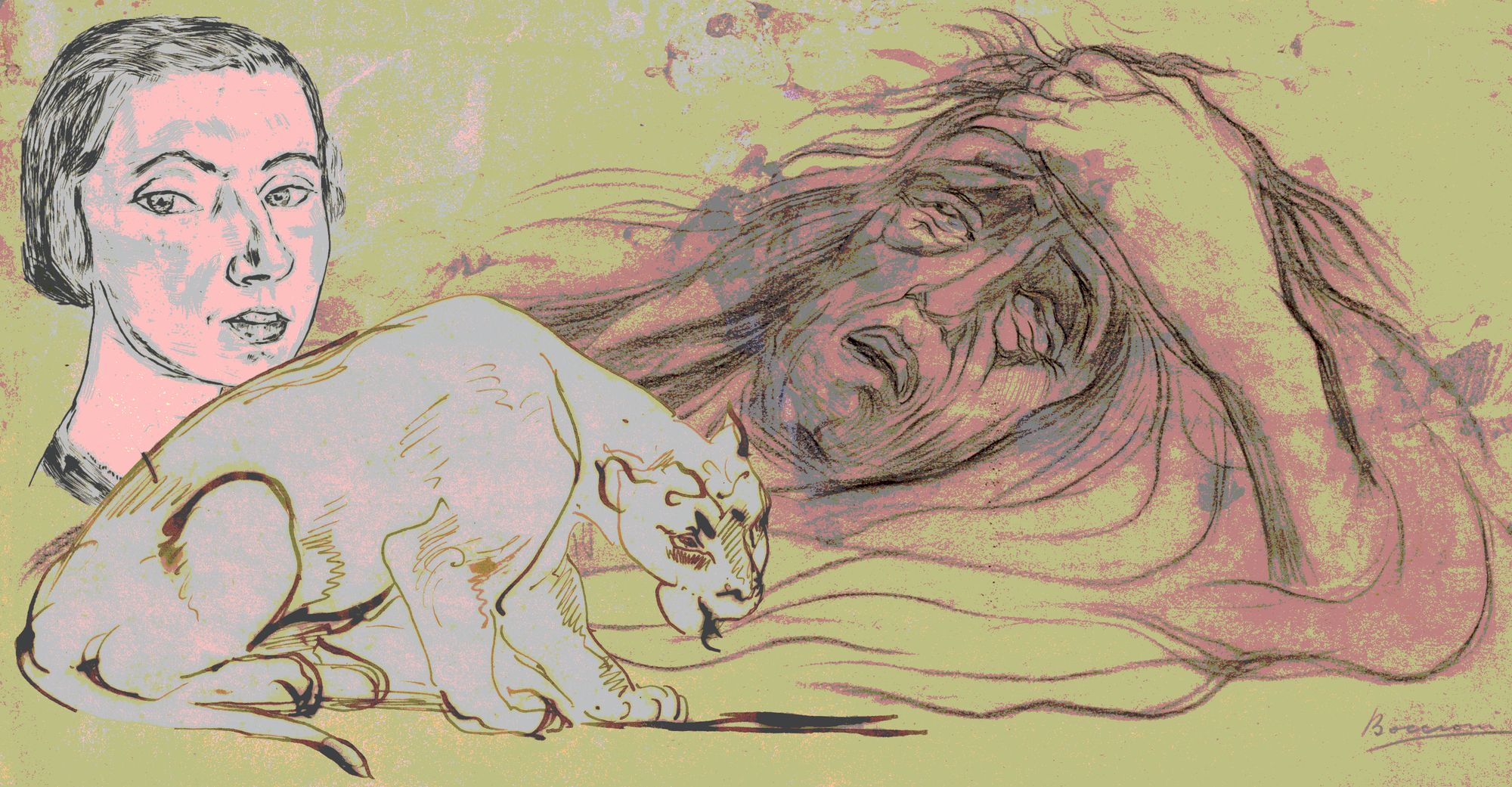She's called Aster Disaster on the posters, which aren't as ragged as the dusty tent. Aster acts as her own sideshow, shimmying in fishnets, fur trim, and fringe. The real draw is her pair of immense, uneasy panthers. Male and female, all russet and midnight, silk and muscle — truly, neither animal as gaunt as it could be. And by torchlight, glorious.